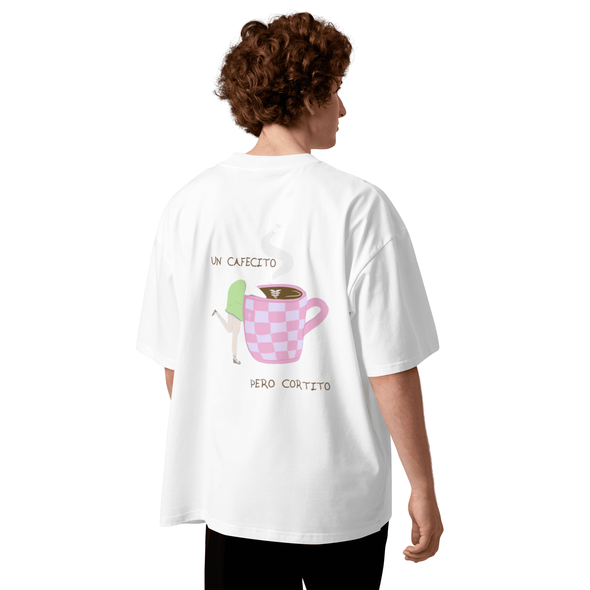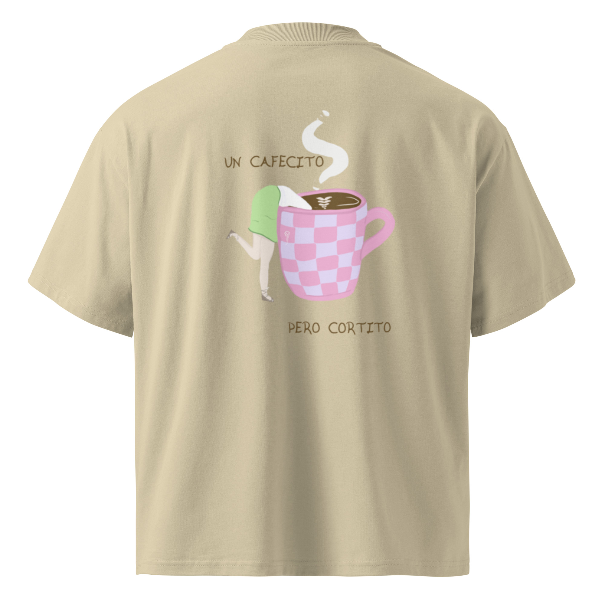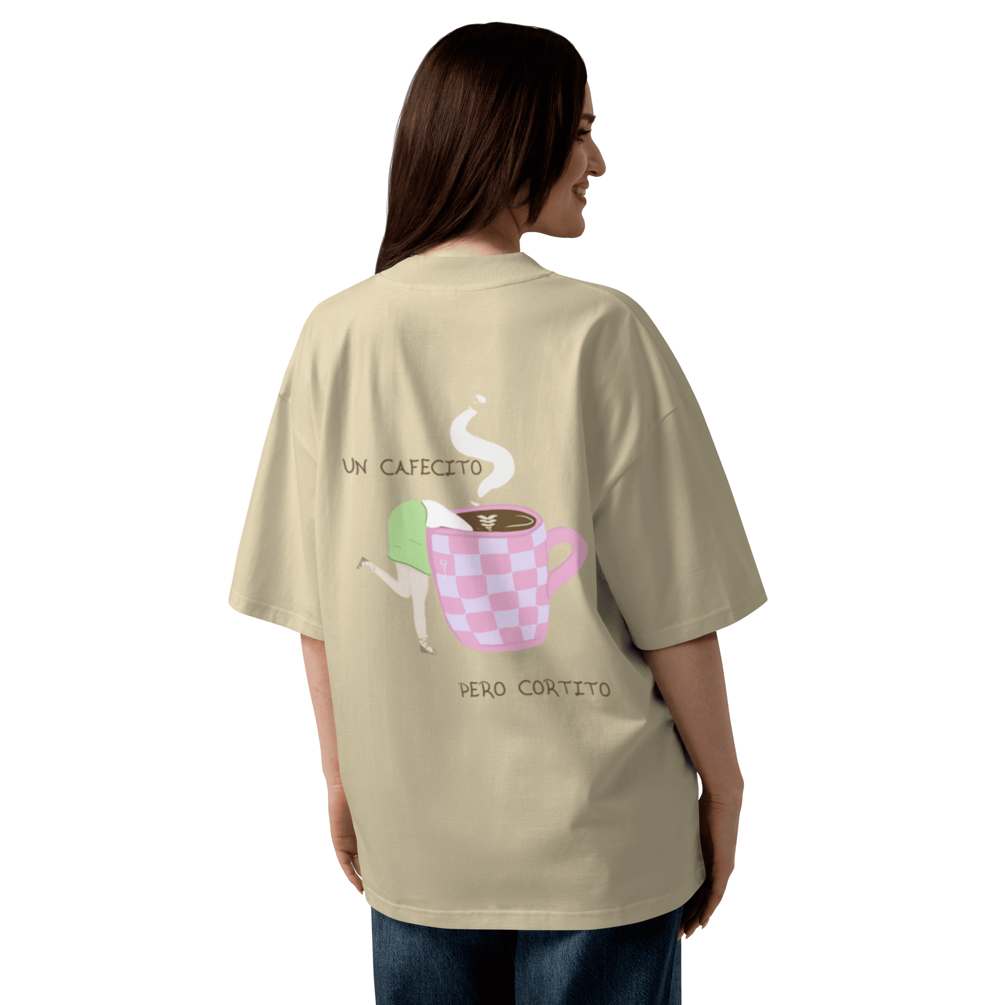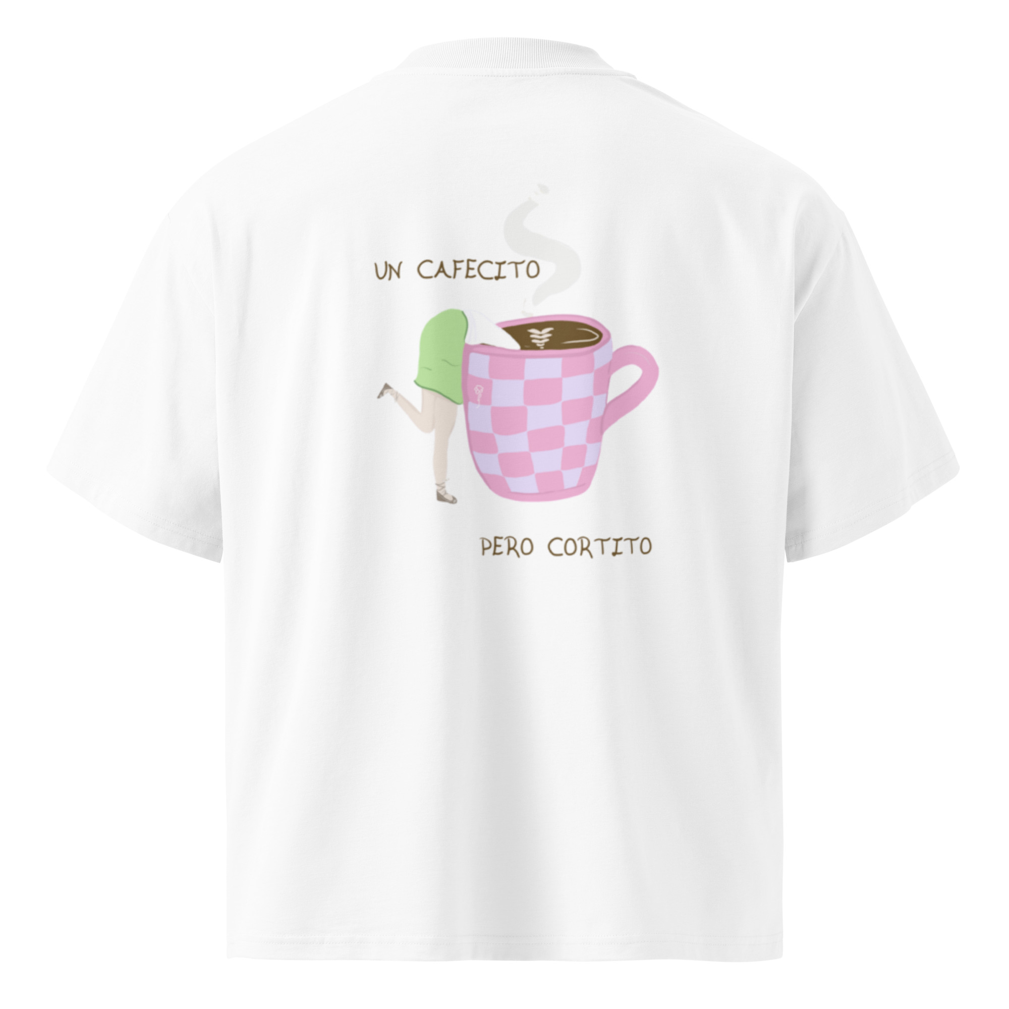 Si el café es tu lenguaje del amor, esta camiseta es para ti. La Camiseta Oversize Orgánica Unisex – ¿Un cafecito? está hecha con algodón 100 % orgánico peinado e hilado en anillos, suave, resistente y perfecta para el día a día. En el pecho aparece el clásico “¿Un cafecito?”, y en la espalda encontrarás una ilustración que responde a la pregunta. Un diseño pensado para quienes saben que los malos momentos se pasan mejor con un cafecito, cortito.